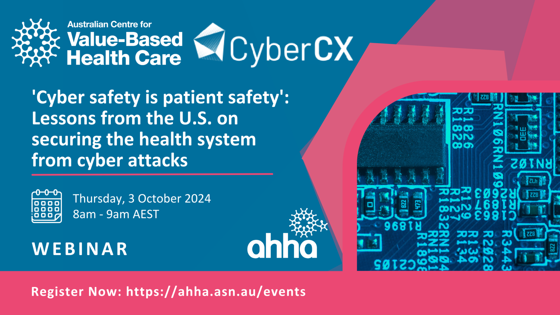 Join us on Thursday 3 October, 8.00am AEST, as we hear how the sector is coming together in the U.S to prepare for and prevent cyber attacks. This will be followed by a panel discussion on a sector wide approach for Australia’s health system.