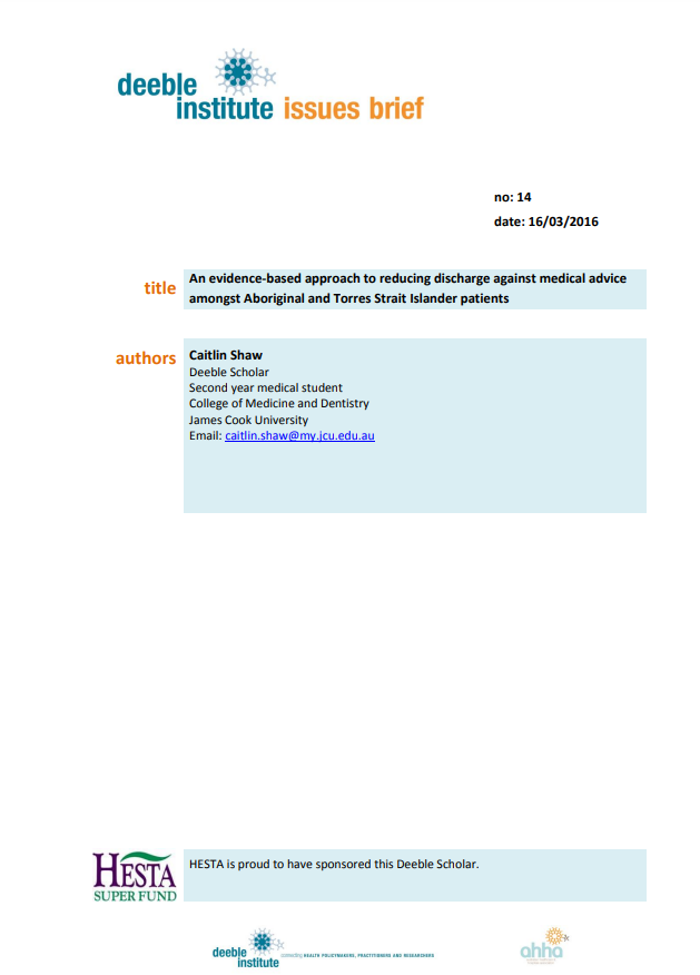 Deeble Institute Issues Brief No. 14: An evidence-based approach to reducing discharge against medical advice amongst Aboriginal and Torres Strait Islander patients
