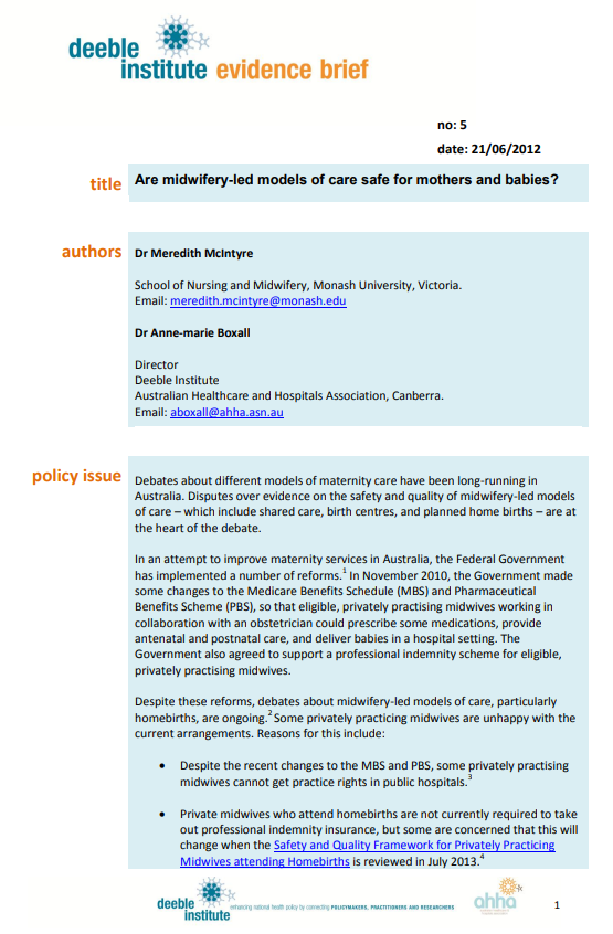 Debates about different models of maternity care have been long running in Australia. Disputes over evidence on the safety and quality of midwifery-led models of care – which include shared care, birth centres, and planned home births – are at the heart of the debate.