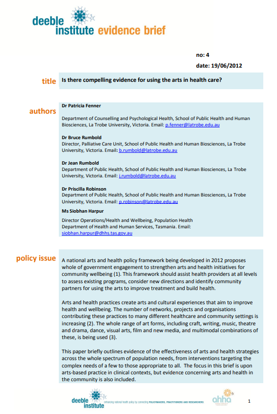 Evidence Brief 4 - Is there compelling evidence for using the arts in health care?