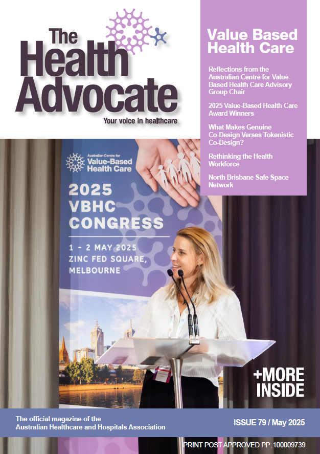 The May 2025 issue of The Health Advocate explores the transformative potential of value-based health care across Australia’s health system. This edition highlights the winners of the 2025 Value-Based Health Care Awards and features in-depth articles on cultural safety, co-design, and equity in care delivery. It includes reflections from leaders in the field, such as the Chair of the Australian Centre for Value-Based Health Care Advisory Group, and showcases innovative models like the North Brisbane Safe Space Network and the Victorian Virtual Specialist Consults. Other key topics include integrated child and family hubs, measuring patient activation in cancer care, and rethinking the health workforce. This issue also delves into the importance of genuine co-design, the role of allied health exercise groups, and the need for systemic reform to ensure sustainability, equity, and outcomes that truly matter to patients.