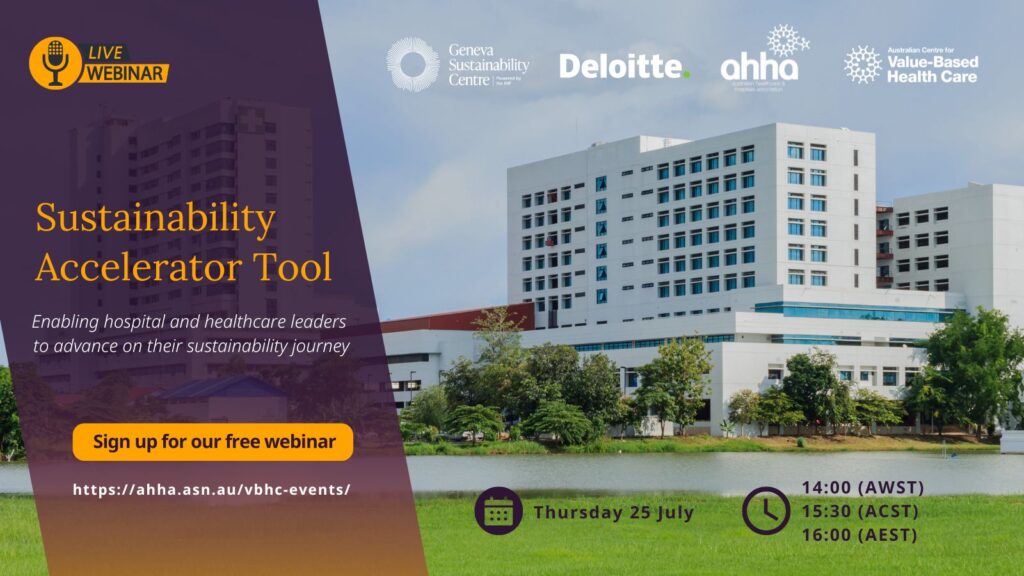 Home Policy and Advocacy Special interest areas AHHA has partnered with the International Hospital Federation’s Geneva Sustainability Centre to bring the Sustainabiltiy Accelerator Tool to Australia. To hear more about the tool and how it has been implemented in international contexts view our webinar. Contact us to discuss how the Sustainability Accelerator Tool can be […]
