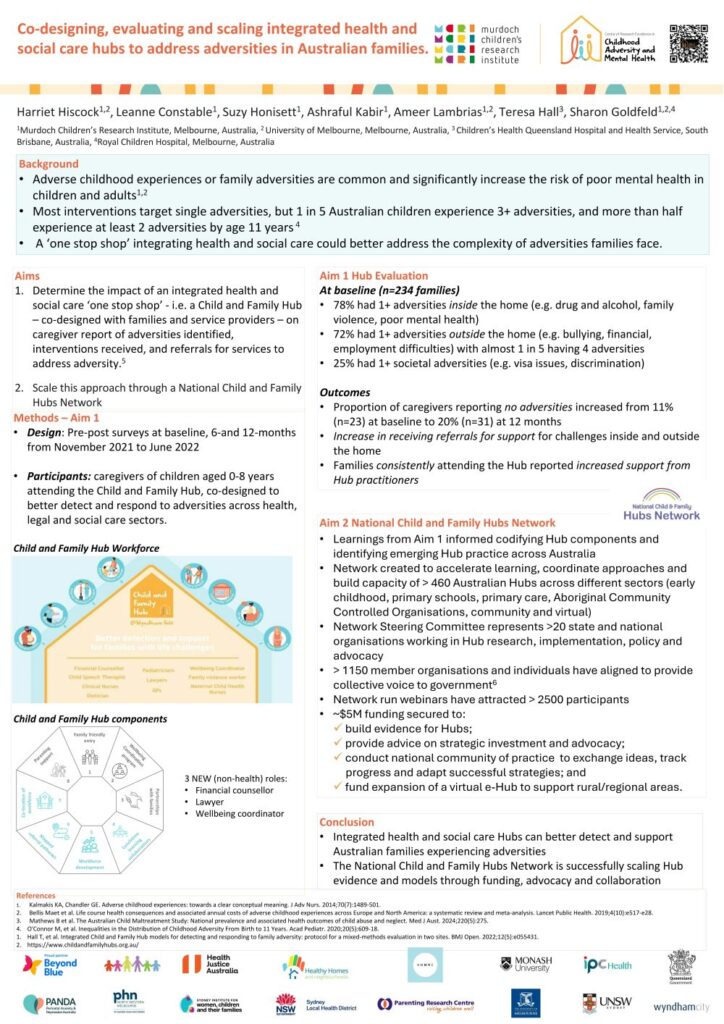 Co-designing, evaluating and scaling integrated health and social care hubs to address adversities in Australian families.